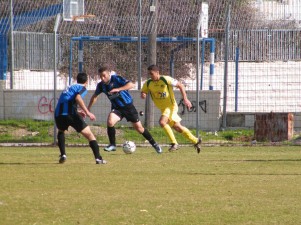 שעריים התקשתה. סאלם סלאמה (בכחול) ועידן אברמוב (צילום: שמעון לוי)