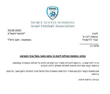 ההתאחדות הודיעה: הפסקת פעילות לליגה א'