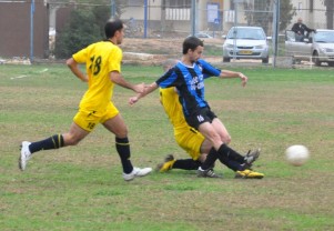 עבירה שהשופט התעלם ממנה. שלומי בוסקילה משדרות גומר את המשחק (צילום: אורי גבאי)