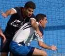 חנן אסור מקריית אונו(מימין)ומופז קורן מהבקעה,בשבוע הבא משחק העלייה לליגה ב בין שתי הקבוצות.(צילום:לירן דורף)