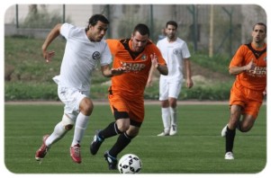 משחק קצבי שלא היה מבייש ברמתו ליגה לאומית. בן ישי עוצר את בן אבו (צילום: אנס אבודעבס)