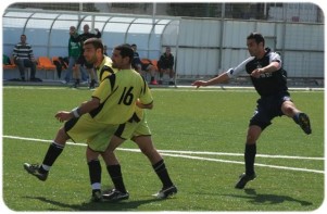 המחצית הראשונה הייתה חלשה מאוד מצד שתי הקבוצות שכמעט ולא יצרו מצבי הבקעה ליד השערים וזאת עד לדקה ה 30. אז הורחק כדור קרן של יפו ע״י הגנת מודיעין אל מחוץ לרחבה שם חיכה איתי גרינברג שבעט כדור אדיר מהאויר שעשה דרכו אל בין חיבורי הקורת אך עירנות והתעופפות מדהימה של קובי דבש בהצלת המשחק מנעה שער בטוח ונהדפה לקרן נוספת שלא נוצלה.