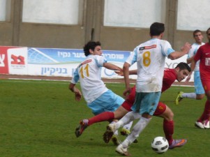 ממש לפני ההפסקה יכלו המקומיים לעלות שוב ליתרון. פעם אחת היה זה אור חסון שהקפיץ מעל קרטה, אבל יוגב צמח הרחיק מהקו ודקה אח"כ עופר סהר ניצב אחד על אחד מול קרטה, אבל השוער יצא מצוין ושתי הקבוצות ירדו להתחמם בהפסקה בשוויון 1:1.