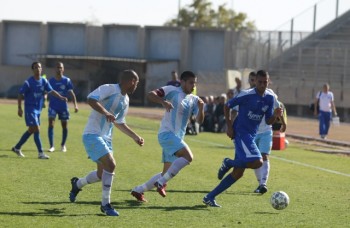 מחצית ראשונה חלשה. בני שרקט (בכחול) ורועי מזרחי (צילום: שלמי גבאי)