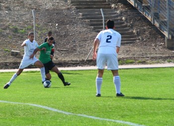 בדקה התשיעית אביאל גבאי המקומי הכניס כדור לרחבה, אבי עמר פתח רגליים והכדור הגיע לשלום עקיבא שממצב קורץ בעט החוצה. ההגנה המקומית לא התקשתה להסתדר עם הכדורים הארוכים ששלחו האורחים לעבר החלוצים והחלו להשתלט על המשחק. עשר דקות להפסקה קיבל קובי בן חמו כדור על סף הרחבה, אך במקום להתקדם בעט לא מדויק והכדור חלף ליד הקורה.
