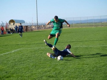 המשחק נרדם מעט. מוהנא ראדי (בכחול) "נשכב" על גליון (צילום: מוחמד חאדר אניס)
