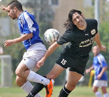 קפטן רמות מנשה בקרב אווירי עם ויטלי רבינוביץ שהספיק להחמיץ פנדל(צילום :שי וקנין)
