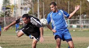 שליטה של מחנה בפתיחת המשחק. תומר שפט (בשחור) וגיל ליברובסקי.