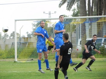לחץ גם במחצית השנייה. נתנאל עשור בפקעת שחקני ברטעה (צילום: אביב עובדיה)
