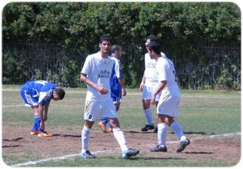 ניסן רביבו(בכחול) מוקף בשחקני טבריה(צילום עודד חסין)