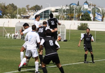 יתרון מהיר שלא עזר. שוער ג'דידה, עוביידה מילחם ופרדריקו מלמד (צילום: מיכאל פישנזון)