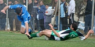 אבו הודף את הנגיחה של רמי צבי. (צילום:לירן דורף)