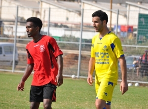 השריד היחיד של שדרות מהעונה שעברה. אבי סיסאי (בצהוב) מכשיל את אבינו ברו (צילום: אורי גבאי)