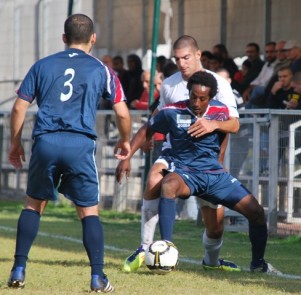 ביצוע מושלם. יובל עופרי (בכחול) נבלם ע"י איתי נעמת (צילום: אמיר דבי)