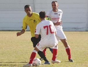 שליטה אופטית של יבנה. אבירם איטלי (בלבן) מצר את צעדיו של רפי סגל (צילום: לירן דורף)