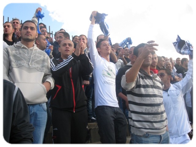 חוזרים הביתה. אוהדי מכבי שעריים (צילום: עידן נדב)