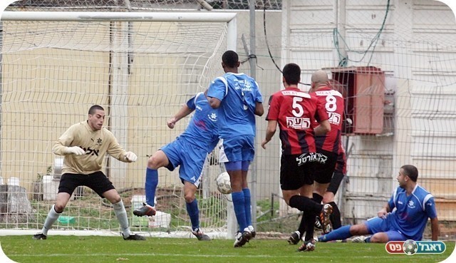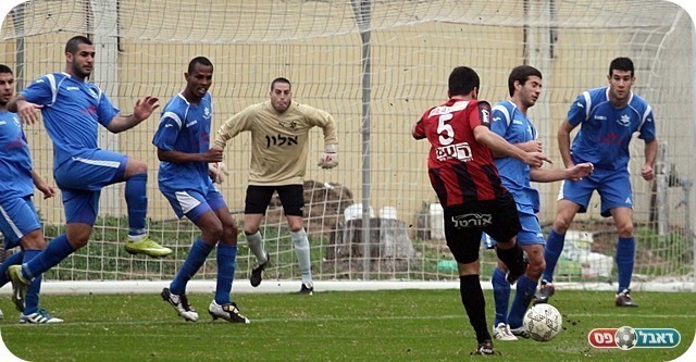 שער בהתקפה הממשית הראשונה. נווה בועט את הכדור החופשי (צילום: לירן דורף)