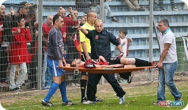 גמר את העונה. חוג'ה מפונה מהמגרש (צילום: לירן דורף)