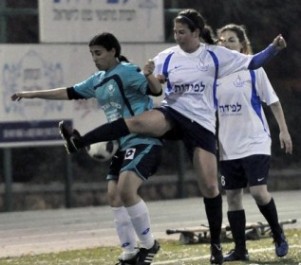 יתרון מהיר. ספיר כדורי לא מצליחה לעצור את הבעיטה של שלי ישראל (צילום: דניאל עיני)