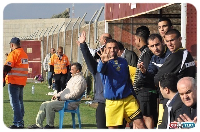 על טהרת המקומיים. הספסל של בני בקה בדרבי בעונה שעברה (צילום: מוחמד חאדר אניס)