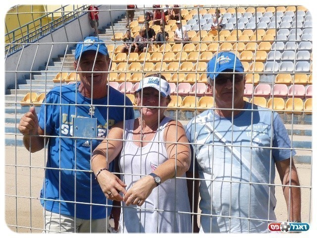 לא נבהלו מהשעה והחום. אוהדי קריית גת (במרכז: יריב ארז'ואן)