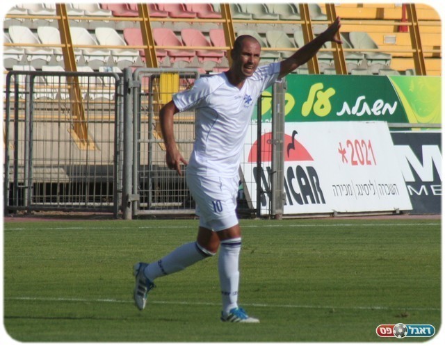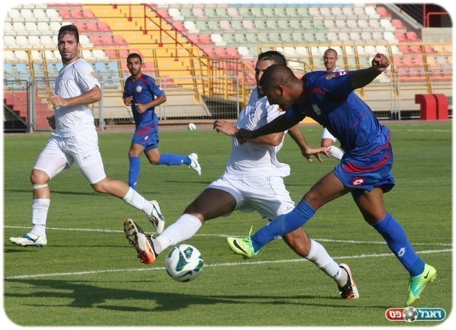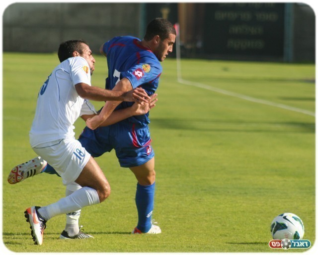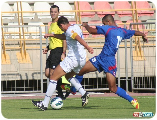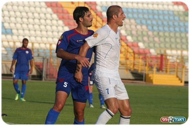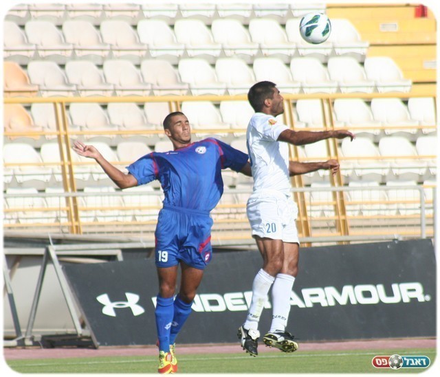 נגר עולה גבוה מעל איב פז. יבנה הייתה גדולה על אשקלון (צילום: ארז נעמן)