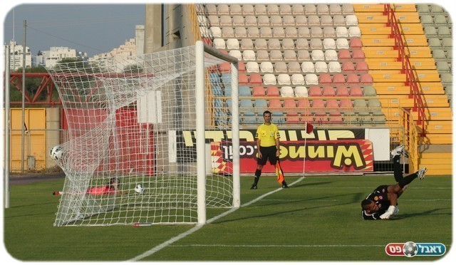 הפנדל של פרץ מפרפר ברשת (צילום: ארז נעמן)