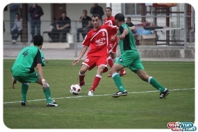 הכי נהנה לשחק שם. עוואד (באדום) במדי גלבוע (צילום: מוחמד חאדר אניס)