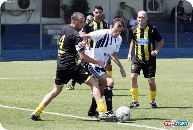 ניצחון יוקרתי בדרבי. שלומי סהר מאור יהודה (בלבן) מול ששי עזר (צילום: לירן דורף)