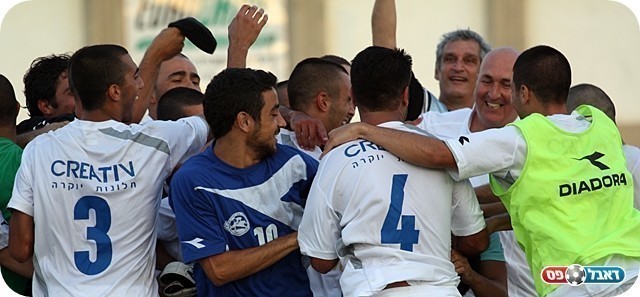 ניצחון מוראלי. ברקוביץ', ביטון וויצמן חוגגים (צילום: לירן דורף)