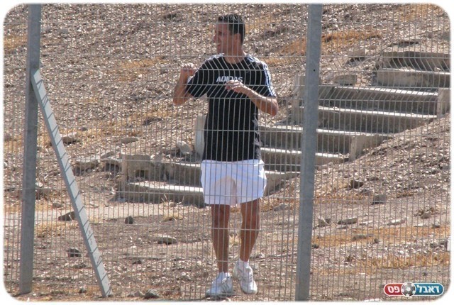 אייל עמר מעביר הוראות דרך הגדר (צילום: עודד חסין)