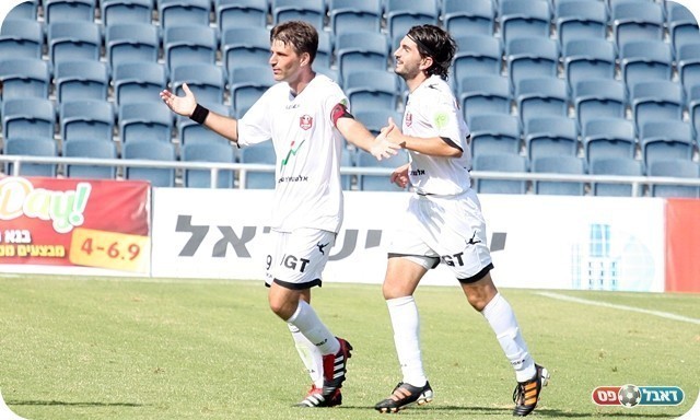 שער ענק. אהרון ואטיאס חוגגים את השני (צילום: לירן דורף)
