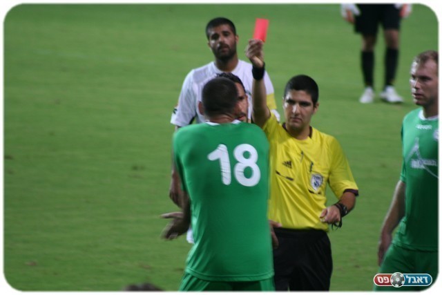 דקה וחצי חלפה והגיע האירוע ששינה את המשחק: יוני קים נפל לארץ בטענה שקרגולה פגע בו ללא כדור, הקוון קרא לשופט רון שבתאי שרץ לעבר אורי והראה לו את האדום הישיר למורת רוחו של החלוץ. בזמן זה אסי הגיע לשופט ואמר לו כמה משפטים מיותרים והשופט הראה גם לו את האדום הישיר. יד קלה על ההדק? יכול להיות, אבל אסי חייב להבין שמישהו סימן אותו באיגוד השופטים.