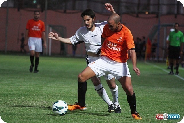 חילוף שהעיר את המשחק. חן לוי (בכתום) ואבישי אטיאס (צילום: לירן דורף)