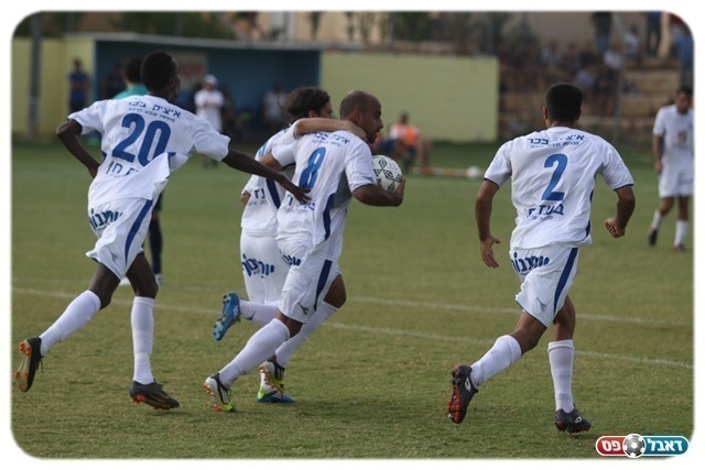 מי יזכור איך הושג הניצחון ? שחקני שערים חוגגים (צילום: שלומי גבאי)