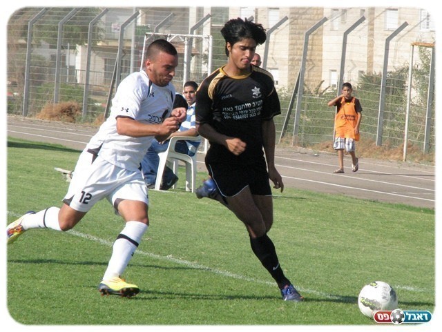 המשחק התאזן. אמיר דיאב (בשחור) ומאור אושרי (צילום: עודד חסין)