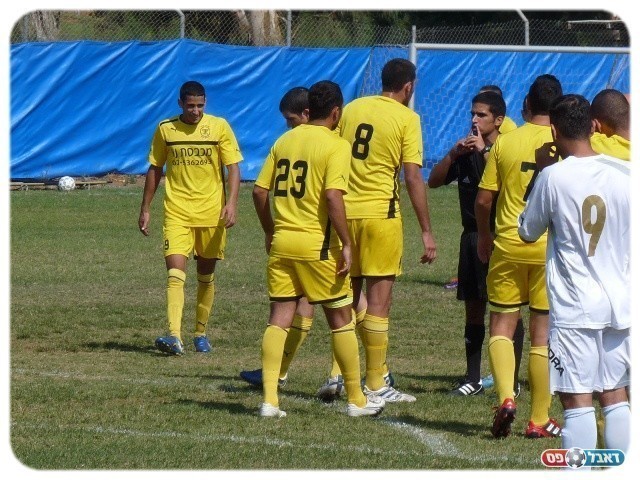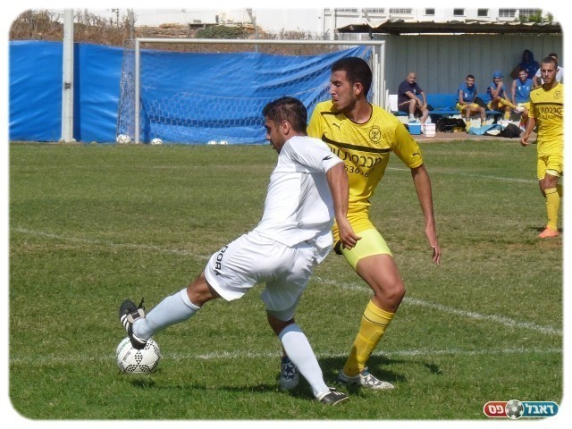 גול משום מקום. אבי בן דוד (בצהוב) ושי גבאי.
