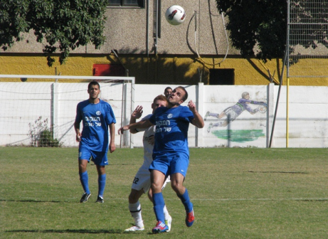 יצרן ההזדמנויות של צור שלום. חיים קימה (בכחול) ומאור אושרי (צילום: עודד חסין)