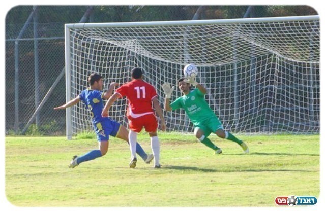 העונש של ערד. אור לוי (לא מכוסה ע"י מס' 9, ויצמן) כובש (צילום: שי מוגילבסקי)