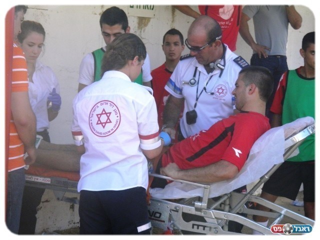 המכה השנייה. שחברי מפונה לבית החולים (צילום: אחמד עזאיזה)