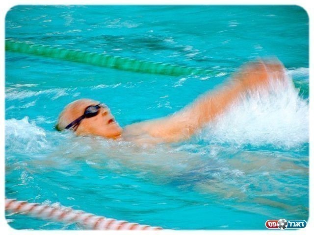 צבי בתחרות בבריכה , בימים שעוד הרשו לו להתחרות.