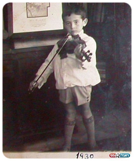צבי מנגן על כינור במשרד של פנחס רוטנברג בחיפה