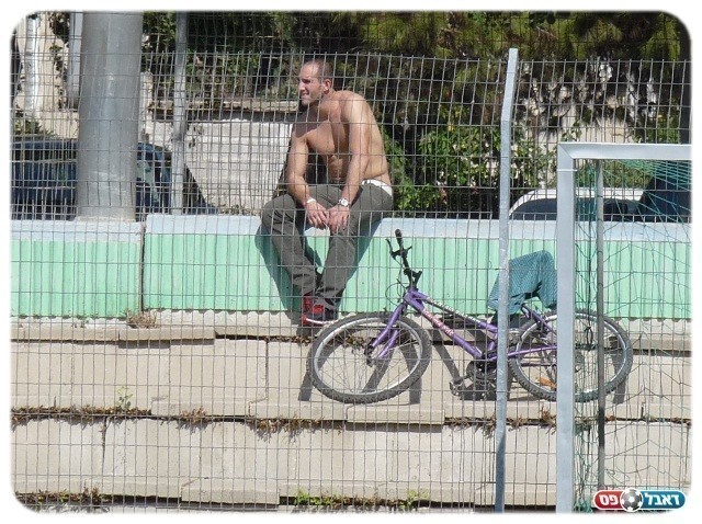 דקה לאחר מכן, הגיע האוהד הבודד כשהוא רכוב על אופניו, הוריד חולצה והתיישב ביציע. אם לא כדורגל לפחות נתפוס צבע...