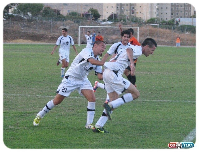 חוגגים את השער שנפסל. אברג'יל (מימין) ושטיינברג (צילום: עודד חסין)