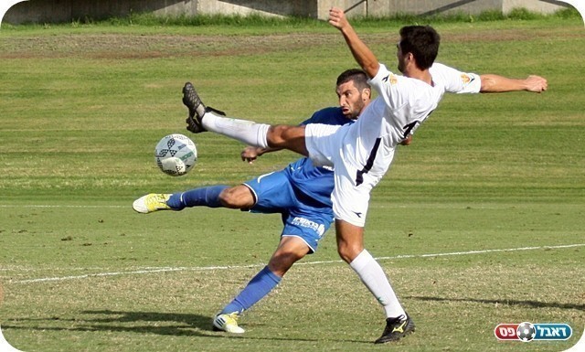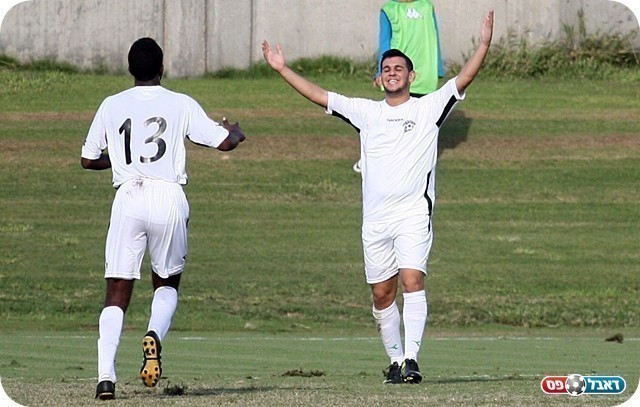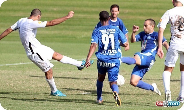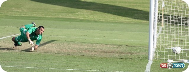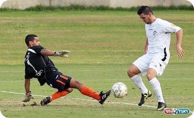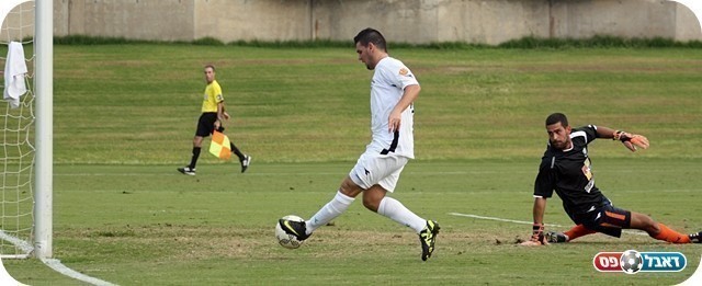 שעריים לא ויתרה. אברהם בדרך לנעוץ את הכדור במשקוף (צילום: לירן דורף)