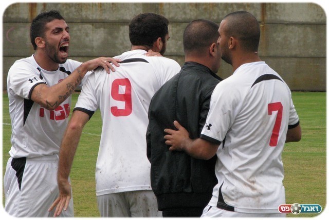 שחקני מגדל חוגגים עם בוסקילה (צילום: עודד חסין)