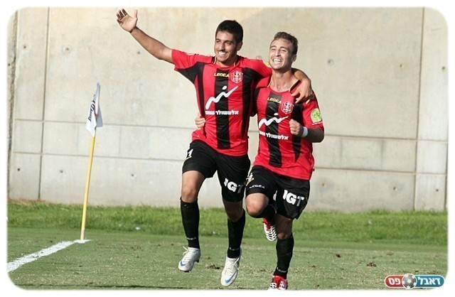 קטמון נראתה יותר טוב בנחיתות מספרית. שמש ופוגלמן חוגגים (צילום: לירן דורף)