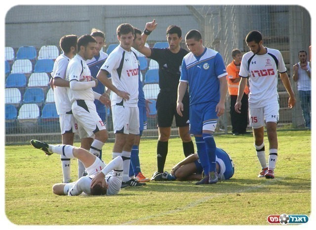 בדקה ה-77 תיקול חזק במרכז המגרש על כדור גובה בין אסף בראון לנתנאל גולדמן שלאחריו שניהם נשארו שרועים על הדשא. האחרון קם לאחר טיפול, אך בראון הורד מהמגרש באלונקה, ומאחר שבמעלות כבר ביצעו את שלושת החילופים, הקבוצה נשארה בעשרה שחקנים.