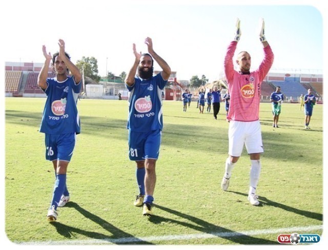 משהו הזדעזע. חוגגים עם מור יוסף את הניצחון (צילום: לירן דורף)