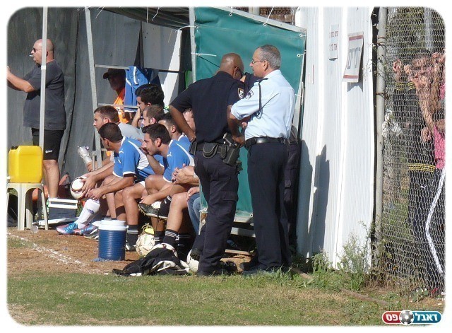 למנוע התלקחות מיותרת. השוטרים ליד הספסל של מחנה
